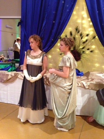 But it really was amazing. :) Seriah's friends Millie and Savannah helped her get ready-- she was running late because they had taken a little too long on their after lunch stroll on the arroyo. (It was a good thing Savannah was keeping an eye on the time, because otherwise Seriah would have been waaaay late.) They scrambled quickly up the slope of the backyard, Seriah dashing to the bathroom to wash the dirt out from under her nails. She had planned to alter a blue prom dress she'd bought at a thrift store back in Moriarty, but there was no time. Quickly she pinned the straps to make them shorter and strapped on high heels to make up for the extra hem length. (Short girl problems.)